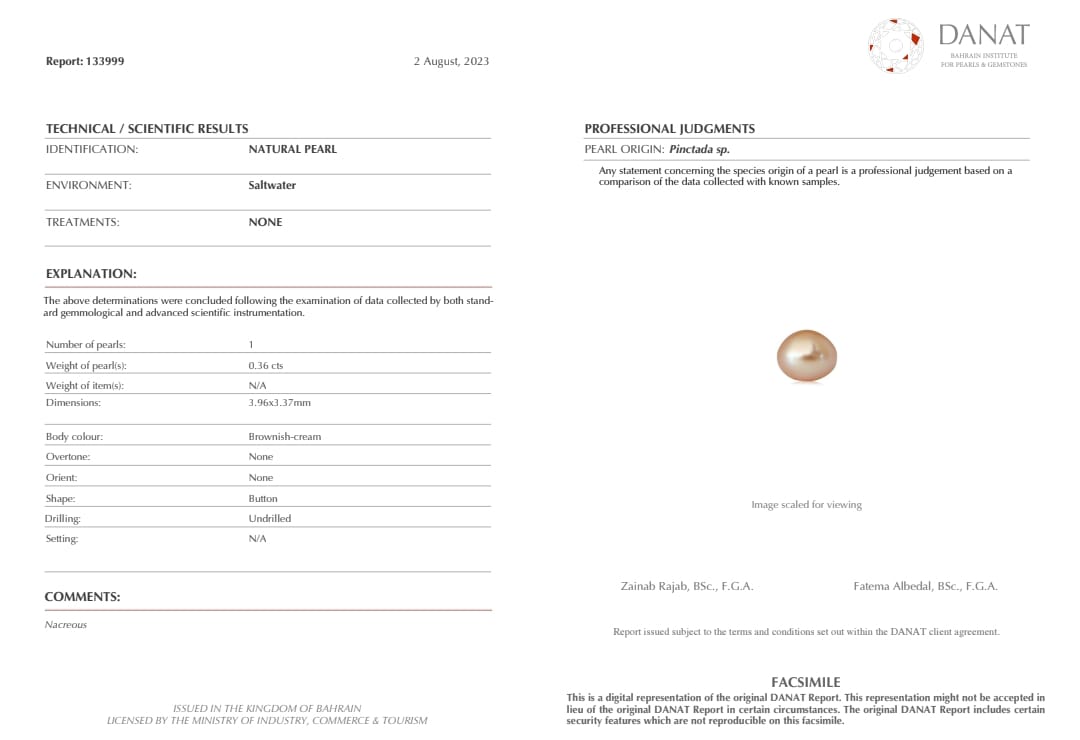 Real Natural Pearl 0.36 Carat Danat Lab Certified 133999/ Hirco Certificate No: 0500202436