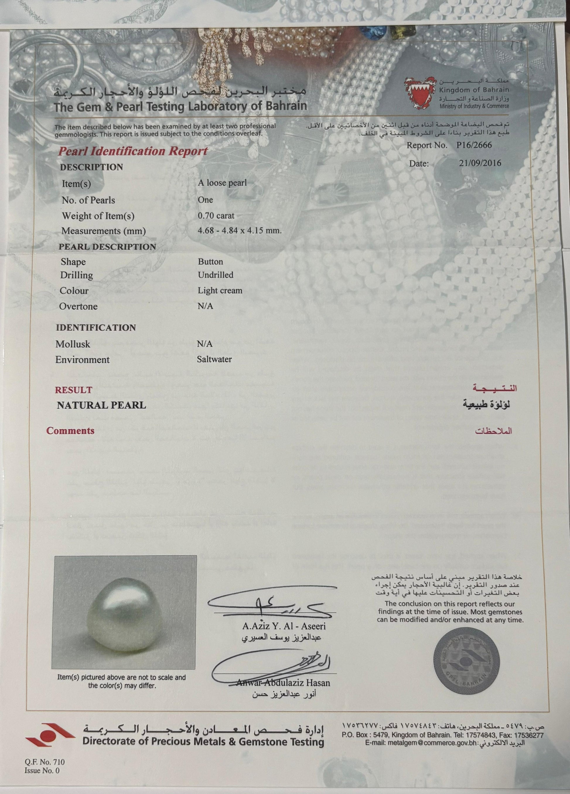 Real Natural Pearl 0.70 Carat Bahrain Lab Certified P16/2666